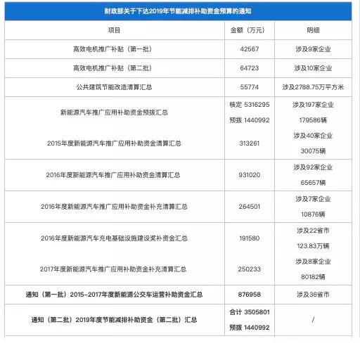 4月24日,财政部连发两批“关于下达2019年节能减排补助资金预算的通知”,包括对新能源车辆、充电桩、公交车运营、核心零部件、公共建筑节能改造等方面的补贴(含预拨)及奖励,共计达到438.28亿元,对新能源车市场稳增长发展促进巨大。