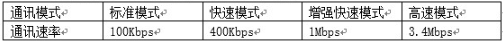I2C总线规定的4种模式下的通讯速率如表1所示: