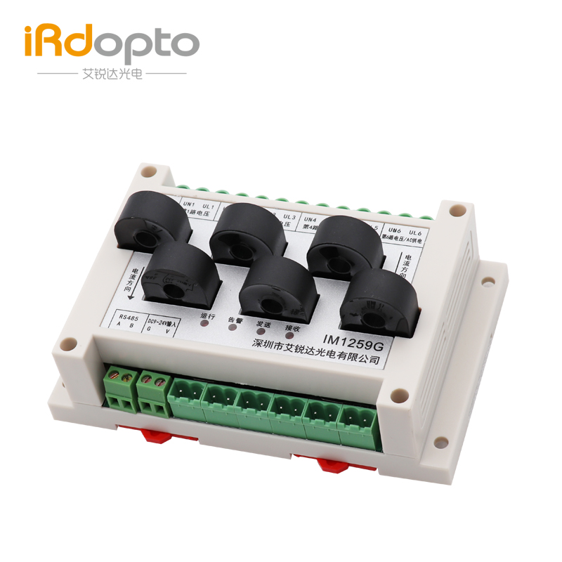 IM1259G 6路互感式计量模块是一款能够完成电能采集、测量及数据传输的单相交流电参数测量产品,能准确分开测量每一路的交流电丈夫、电流、功率、功率因数、频率、电量等电能数,可做成二个三相模块使用,提供1路RS-485通讯接口,MODBUS-RTU规约,具有极优的性价比。